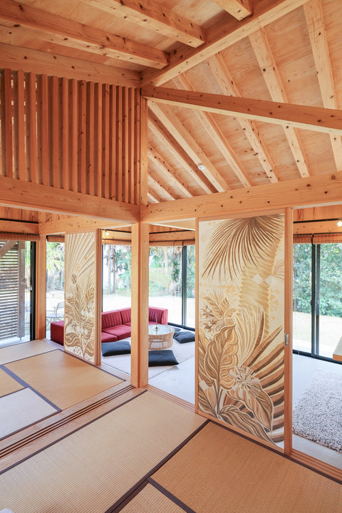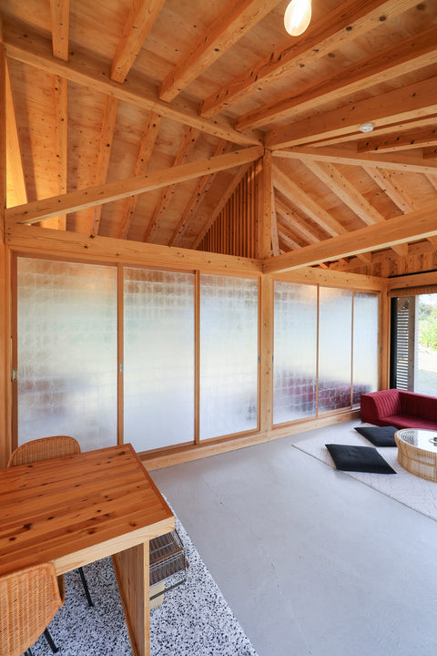 2002年より工房を奄美大島に移し、日本の風土建築に自然と溶け込む作品を制作している。